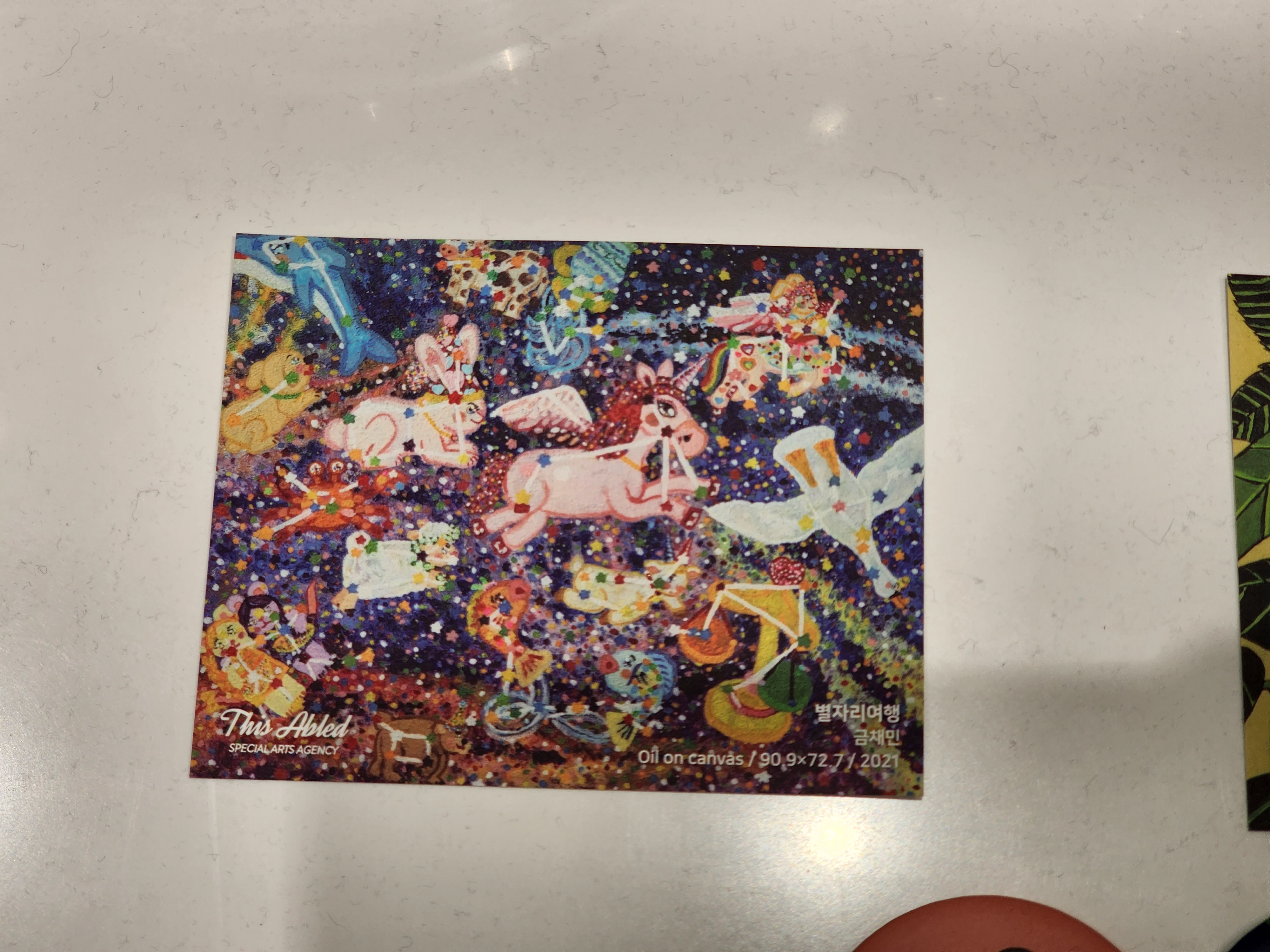 그래서 제가 갖고싶은 그림 하나를 찍어왔습니다. 수많은 점과 수많은 색이 쓰였는데 왜인지모르게 저쪽 세상은 더 평화로워 보였거든요.