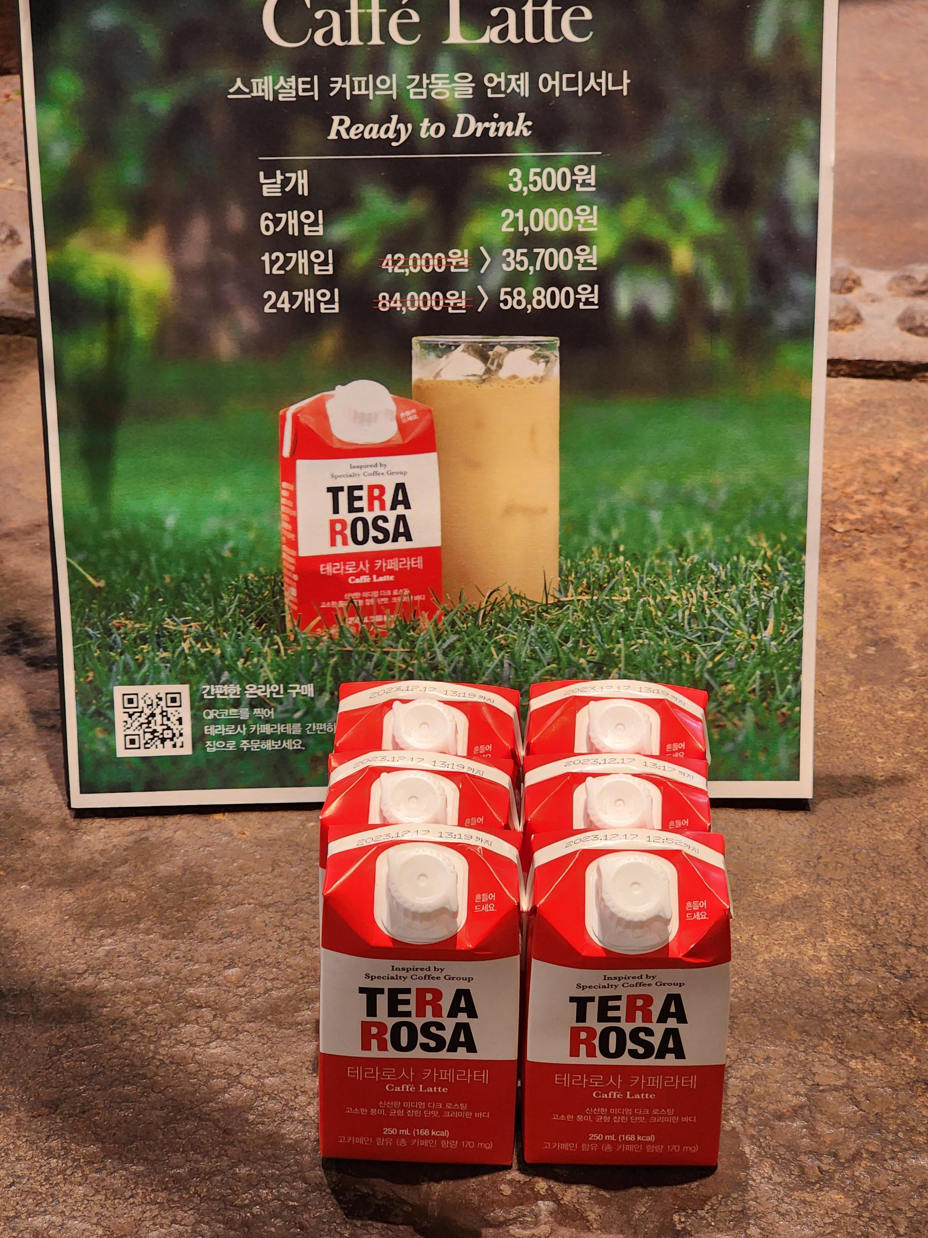 이번에 테라로사에서 카페라떼를 출시했더라고요. 6개 구매하면 종이백을 주는데 1개 3,500원이면 비싼 것 같긴 한데 생각보다 맛있아서 괜찮았어요.