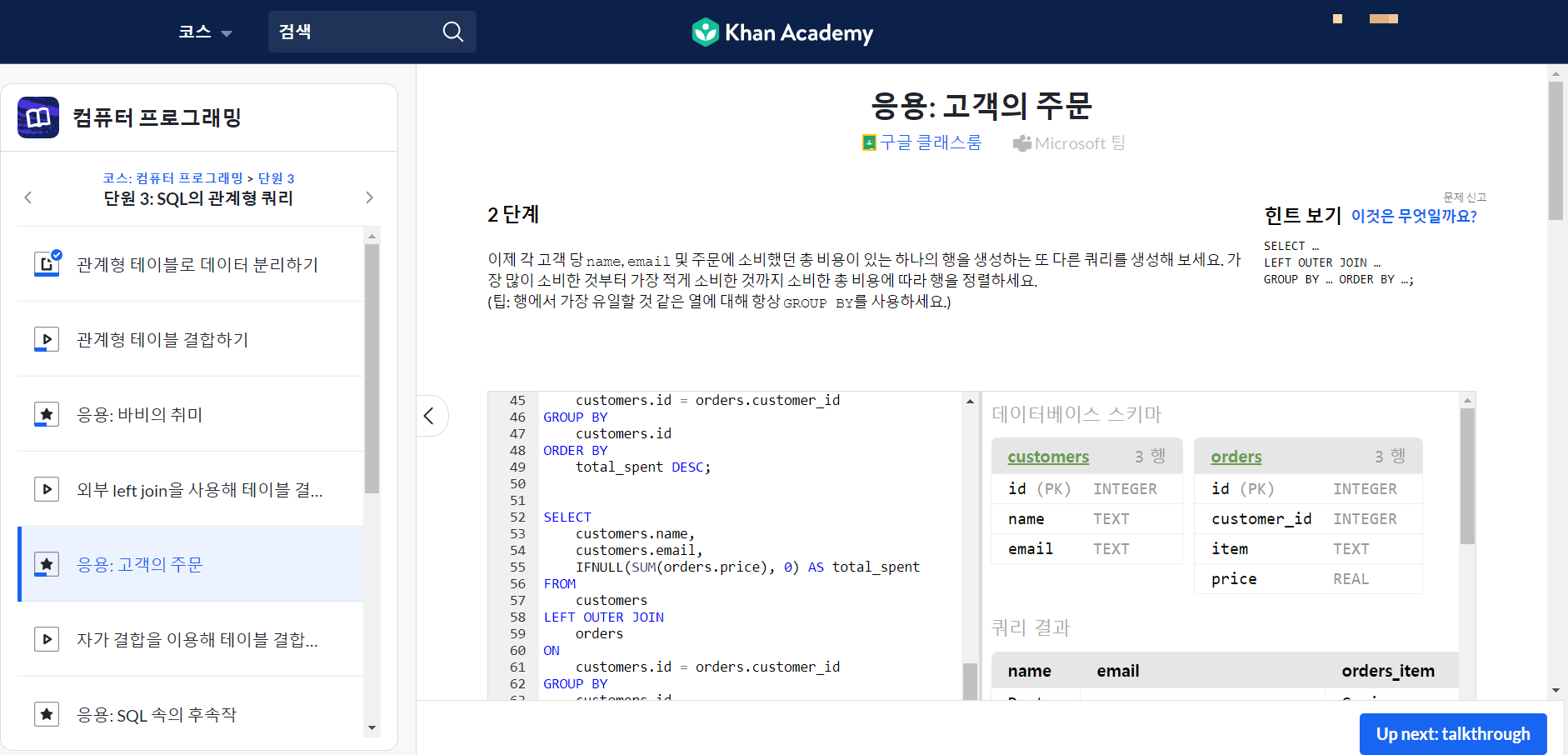 동영상 강의로 SQL을 학습하고 문제를 풀어볼 수 있는 사이트에요.