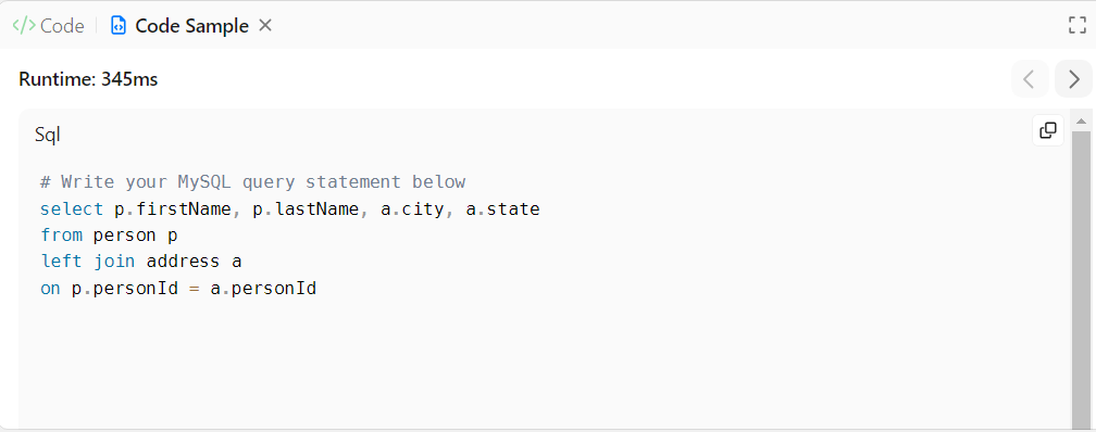 1.LEET. 175. Combine Two Tables