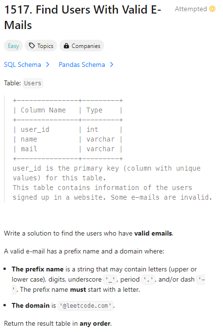 WHERE email '^ [a-zA-Z] [a-zA-Z0-9_.-]*@leetcode\.com$'